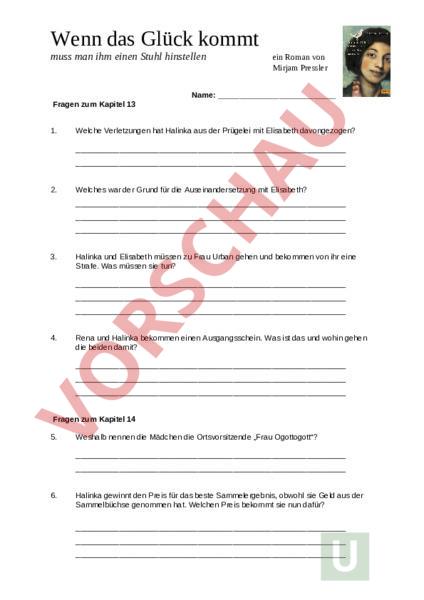 Mirjam Pressler / Wenn das Glück kommt" / Kap. 13+ 14 +15/ Fragen zum Buch