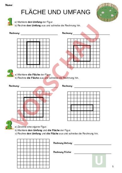 Arbeitsblatt: Mathematik Fläche und Umfang