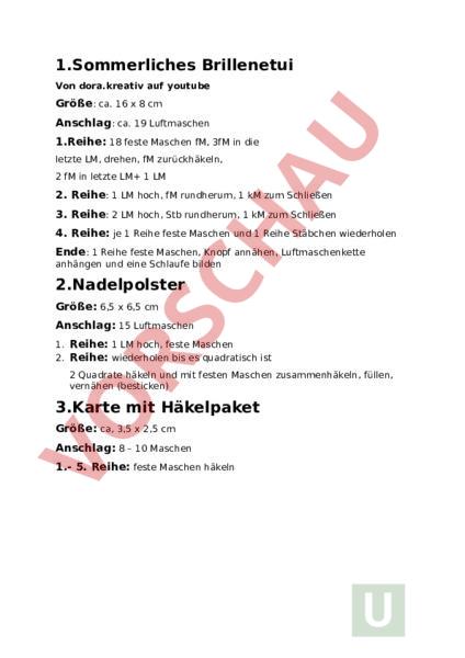 Arbeitsblatt: Brillenetui häkeln, Häkeln 5.Schulstufe