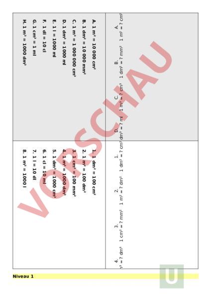 Flächenmasse/Quadratmasse, Kubikmasse/Volumen, Hohlmasse um sich gegenseitig abzufragen. Inkl. Lösungen.