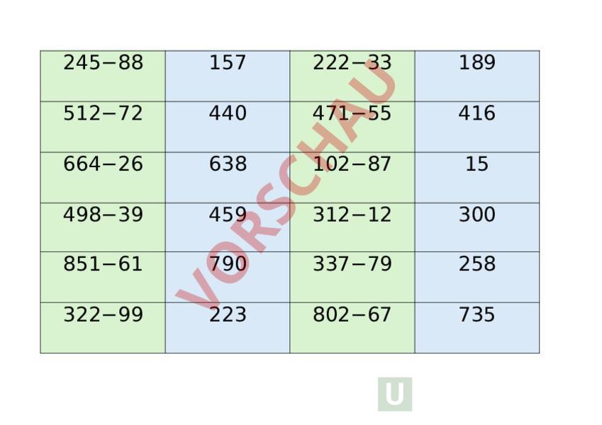 Arbeitsblatt: Mathe Memory Subtraktion
