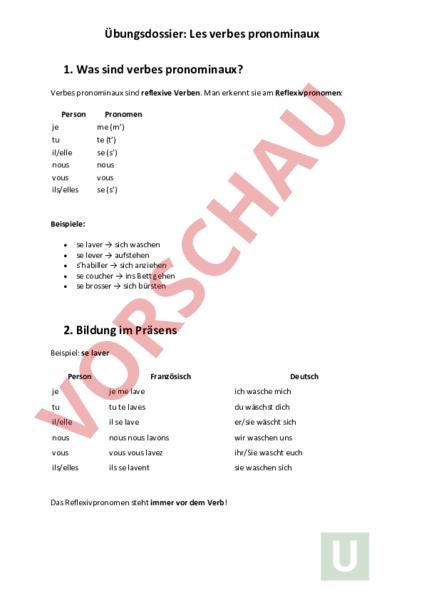 Übungsdossier 7.Klasse Real zum Thema Verbes Pronominaux