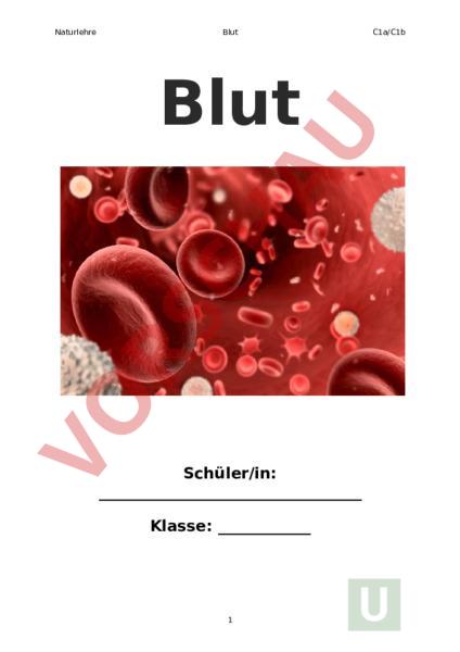 Naturlehre Blut Blut Schüler/in: Klasse: 1 C1a/C1b Naturlehre Blut C1a/C1b Lernziele Beim Thema Blut beschäftigen wir uns mit den folgenden Fragen: 1. Was sind die Bestandteile des Blutes und was sind ihre Aufgaben? 2. Wie wird das Blut transportiert? 3. Wie funktioniert die Heilung einer Wunde? 1. Überblick: Film Es war einmal das Leben. Zeichentrickfiguren Beschreibung 2 Aufgaben Naturlehre Blut C1a/C1b 2. Die Zusammensetzung des Blutes Blut ist ein ganz besonderer Lebenssaft. Ohne Blut könnten wir nicht leben. Jeder erwachsene Mensch hat in seinem Körper ungefähr Liter Blut. Das sind etwa des eigenen Körpergewichts. Wenn wir Blut stehen lassen, dann passiert folgendes: Flüssige Bestandteile: Blutplasma (rund 1. Aussehen: 2. Aufgabe: Feste Bestandteile: Blutzellen (rund Name: rote Blutzellen Blutplättchen Aussehe n: Menge: 3 Weisse Blutzellen Naturlehre Blut C1a/C1b Aufgabe Aufgaben: 1. Nun hast du die einzelnen Bestandteile des Blutes und deren Aufgaben kennengelernt. Fasse nun die Hauptaufgaben des Blutes zusammen: 1. 2. 3. 4. 2. Bei diversen Krankheiten ist die Anzahl der verschiedenen Bestandteile des Blutes kleiner. Überlege dir die Auswirkungen auf den Körper bei: a) Mangel an roten Blutkörperchen (z.B. bei Blutarmut): b) Mangel an weissen Blutkörperchen (z.B. bei Aids): c) Mangel an Blutplättchen 3. Blutgerinnung und Wundverschluss Eine der wichtigsten Eigenschaften des Blutes ist, dass es gerinnen kann. Dies bedeutet, dass es fest wird und aufhört zu fliessen. Dies ist notwendig, um eine Blutung zum Stillstand zu bringen. Ohne die Blutgerinnung würden wir schon bei kleineren Verletzungen verbluten. 1. Teil: Blutungs-Stopp Wenn du dich z.B. mit einem Messer schneidest, werden dabei Haut und feine Blutgefässe durchtrennt. Eine solche Wunde blutet dann etwa 2 4 Minuten lang, 4 Naturlehre Blut C1a/C1b bevor die Blutung zum Stillstand kommt. Das ist das erste sichtbare Zeichen für das Funktionieren der Blutgerinnung. Die Reparatur der undichten Stelle im Blutgefäss kann nur stattfinden, wenn sich die beschädigten Blutgefässe stark zusammenziehen und verengen. Der Blutstrom verlangsamt sich. Botenstoffe werden ausgesendet, die Blutplättchen anziehen. Diese Blutplättchen lagern sich an der Schnittstelle an. Die Wunde wird auf diese Weise verstopft, die Blutung ist gestoppt. 2. Teil: Wundverschluss Der zweite Teil der Blutgerinnung dauert wesentlich länger. Hier wird die Wunde wieder repariert und verschlossen. Das geschädigte Gewebe und auch die Blutplättchen selbst geben verschiedene Stoffe ins Blutplasma ab. Dort aktivieren sie weitere Stoffe, es entsteht eine sogenannte Kettenreaktion. Schliesslich bildet sich ein dichtes Fasernetz um die Wunde. In diesem Netz bleiben rote Blutzellen hängen und verstopfen die Wunde. Es entsteht ein Propf. Die Zeit, die bis dahin vergeht, die Gerinnungszeit, beträgt bei einem gesunden Menschen 5-10 Minuten. Mit der Zeit bildet sich ein festsitzendes und trockenes Netzwerk, der Wundschorf. Das Netz wird nach und nach wieder aufgelöst und die darunter liegenden Schichten der Haut bilden neue Zellen, welche die Wunde endgültig verschliessen. Bei tiefen Verletzungen bleibt eine Narbe zurück. Auftrag: Unten siehst du ein Blutgefäss. Notiere, was an den einzelnen Stellen passiert. 1. 2. 3. 4. 5. Wir können die Blutgerinnung auch mit einem Riss in einem Kleidungsstück vergleichen, das anschliessend repariert werden muss. Welche Gemeinsamkeiten findest du zur Wundheilung? Schreibe jeweils daneben. 5 Naturlehre Blut Gerissenes Kleidungsstück C1a/C1b Verletztes Blutgefäss 1. Riss im Stoff 2. Stoffränder von Hand zusammenziehen. 3. Faden holen 4. Stoffränder mit einem Faden zusammennähen Blutgruppenbestimmung 1. Blutgruppen Ein Überblick Die Blutgruppe ist so alt wie die Menschheit. Zu Beginn gab es nur die Blutgruppe 0, aber über die Jahrtausende entwickelten sich durch den Einfluss der Umwelt verschiedene Typen heraus. Heute gibt es neben der Blutgruppe 0 noch Blutgruppe, , und . Dieses Blutgruppensystem nennt man das ABO-System. Die Blutgruppe wird vererbt, das heisst, deine Blutgruppe ist abhängig von den Blutgruppen deiner Eltern. Die Blutgruppe ist eine Beschreibung der Oberfläche der roten Blutkörperchen. Auf der Oberfläche sitzen nämlich sogenannte Antigene. Von ihnen gibt es Antigen und B. Ebenso gibt es Antikörper und B. Antigen und Antikörper derselben Art kommen nie zusammen vor, sonst gibt es eine Reaktion des Immunsystems und das Blut verklumpt. Antigen (auf den roten Blutkörperchen): Antikörper (im Blutplasma): Blutgruppe 0 Blutgruppe Struktur der Oberfläc he (Antigen e) Antikörp er im Blutplas ma Häufigkei in der Schweiz 6 Blutgruppe Blutgruppe AB Naturlehre Blut C1a/C1b Blutspende Ein Blutverlust von mehr als einem Liter kann tödlich sein. Oft sind Bluttransfusionen (Blutspenden) nötig, um den Blutverlust zu ersetzen. Bekommt jemand eine Blutspende, so ist es wichtig, dass sich die beiden Blutgruppen von Spender und Empfänger vertragen, ansonsten greifen die Antikörper das Spenderblut an und der Spender wird geschädigt. Bei einer Blutspende müssen also unbedingt die Blutgruppen beachtet werden. Wer wem Blut spenden kann, zeigt die Auflistung rechts. Personen mit Blutgruppe 0 sind sogenannte . Dies bedeutet, dass sie allen Personen Blut spenden können. Personen mit Blutgruppe AB sind sogenannte , sie können von allen Personen Blut empfangen. 7 Naturlehre Blut C1a/C1b 2. Bestimmung deiner Blutgruppe Wichtige Hinweise: 1. Das Bestimmen der Blutgruppe ist freiwillig. 2. Jeder arbeitet bei diesem Versuch für sich alleine. Wer sich nicht selbst stechen will, fragt die Lehrperson. 3. Alles, was mit Blut in Berührung kommt, wir gleich nach dem Gebrauch im bereit gestellten Becherglas entsorgt. Vorgehen: 1. Du brauchst folgendes Material: 1 Stechhilfe, 1 Kleenex, 1 Desinfektionstüchlein, 1 Objektträger, 2 Zahnstocher 2. Desinfiziere dir die Stelle des Fingers, wo du dich stechen willst. A