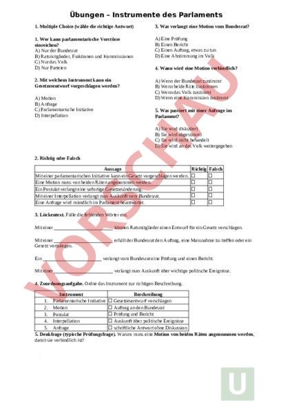 Arbeitsblatt: Übungen – Instrumente des Parlaments