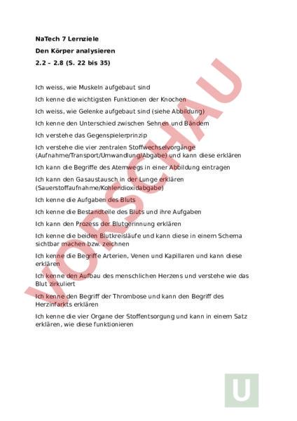 Arbeitsblatt: NaTech 7 Thema 2 Lernziele