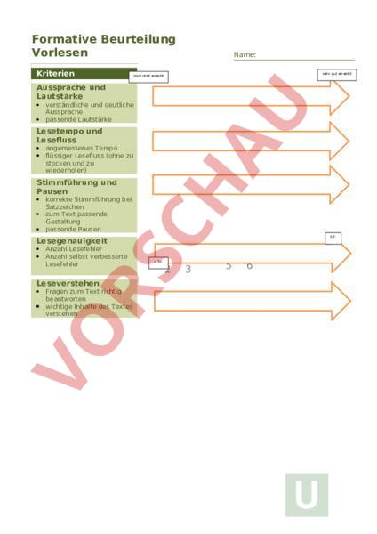 Arbeitsblatt: Formatives Beurteilen: Vorlesen & verstehen