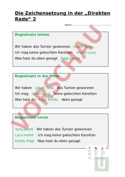 Arbeitsblatt: Zeichensetzung in der „Direkten Rede“ 2