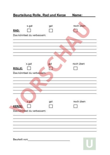 Beurteilung Rolle, Rad und Kerze s.gut gut Name:_ noch üben RAD: Das könntest du verbessern: s.gut gut noch üben ROLLE: Das könntest du verbessern: s.gut gut noch üben KERZE: Das könntest du verbessern: Beurteilt von:_