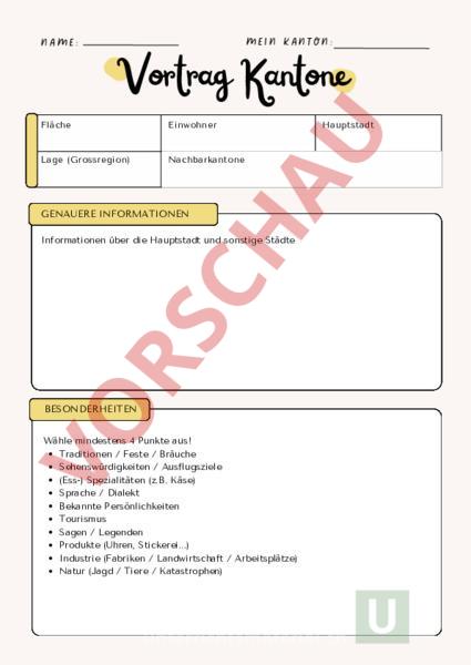 Arbeitsblatt: Vortrag Schweizer Kantone Dossier