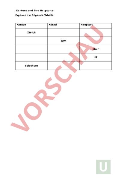 Arbeitsblatt: Kantone