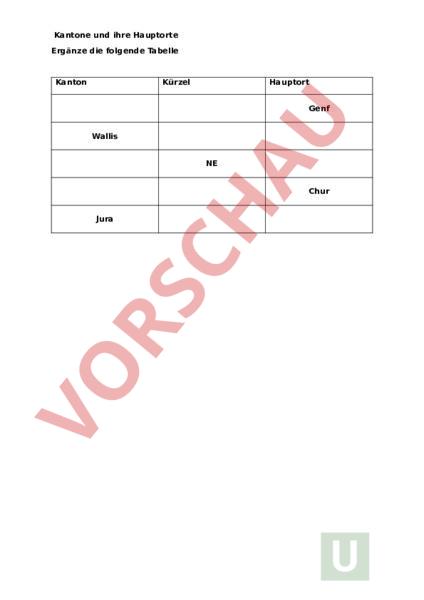 Kantone und ihre Hauptorte Ergänze die folgende Tabelle Kanton Kürzel Hauptort Genf Wallis NE Chur Jura