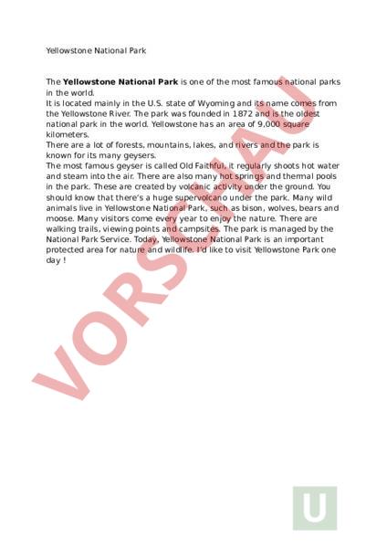 Englisch - Yellowstone National Park summary