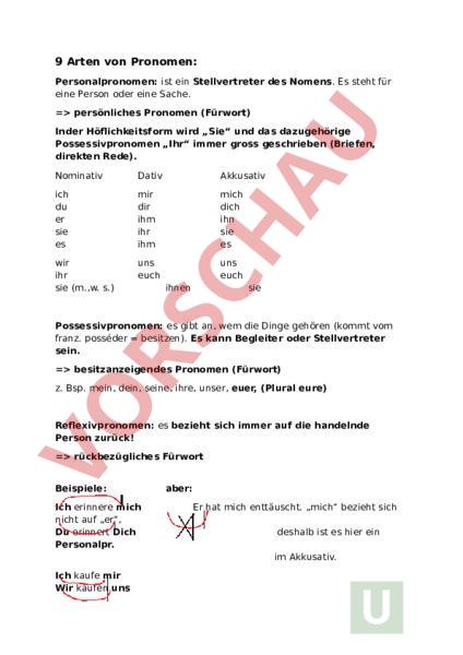 Arbeitsblatt: DE - 9 Arten von Pronomen