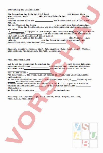 Entstehung der Jahreszeiten Die Drehachse der Erde ist 23,5 Grad und ändert ihre Ausrichtung auch während des Umlaufs der um die Sonne. Dadurch ändert sich der der Sonnenstrahlen im Laufe des Jahres. Ist der Nordpol der Sonne, so steht die Sonne besonders über der Nordhalbkugel und die Sonnenenergie wirkt konzentriertwir haben Im hingegen ist der Nordpol von der Sonne weggeneigt, die Sonne steht besonders, und das streifend einfallende Sonnenlicht verteilt seine Energie auf einen großen . Das Gebiet zwischen den beiden (die Tropen) wird relativ von der Sonne bestrahlt und unterliegt demzufolge nicht dem Wechsel der Bereich, geneigt, Sommer, tief, Jahreszeiten, Erde, hoch, nicht, Winter, gleichmäßig, Wendekreisen, Einfall, zugeneigt, Polartag/Polarnacht Auf Grund der geneigten Drehachse der geht in den Gebieten zwischen nördlichem und Nordpol bzw. zwischen südlichem Polarkreis und zeitweise die Sonne nicht auf bzw. nicht unter Von den Polen zu den Polarkreisen nehmen die Polartage und Polarnächte zahlenmäßig, so dass am nördlichen bzw. südlichen Polarkreis noch je Polartag und Polarnacht stattfinden. Während der winterlichen Polarnacht (23.09.- 21.03.) geht die Sonne am Nordpol überhaupt nicht , in der übrigen Zeit nicht (Polartag). Am Südpol ist stets das zu beobachten. Polartag, ab, Gegenteilige, eine, unter, Erde, Südpol, ein, auf, Polarkreis, Polarnacht