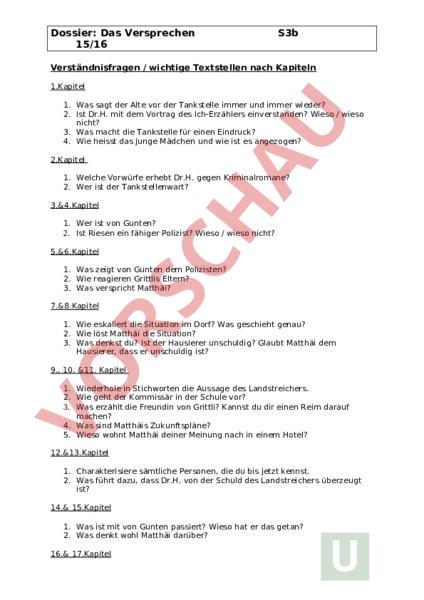 Das Versprechen-Dürrenmatt-Fragen zu den Kapiteln