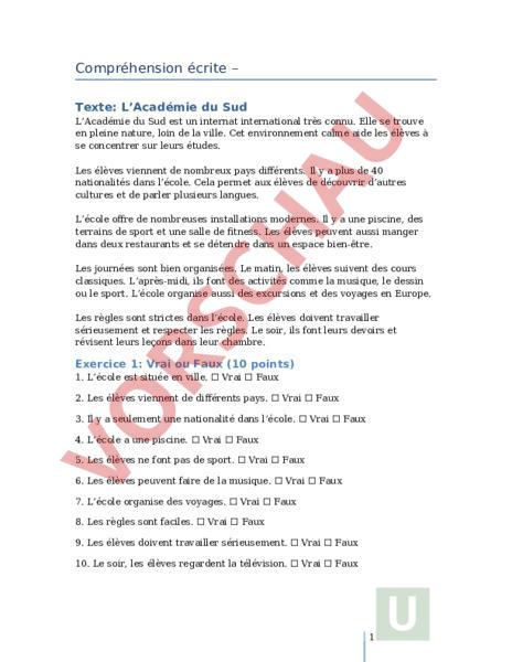 Compréhension écrite –