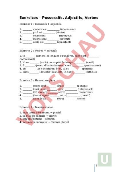 Possessifs, Adjectifs, Verbes