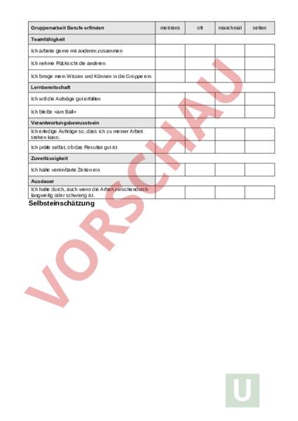 Arbeitsblatt: Berufe erfinden Selbsteinschätzung