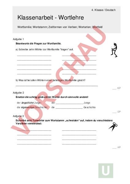 Arbeitsblatt: Wortlehre 2 Deutsch 4. Klasse
