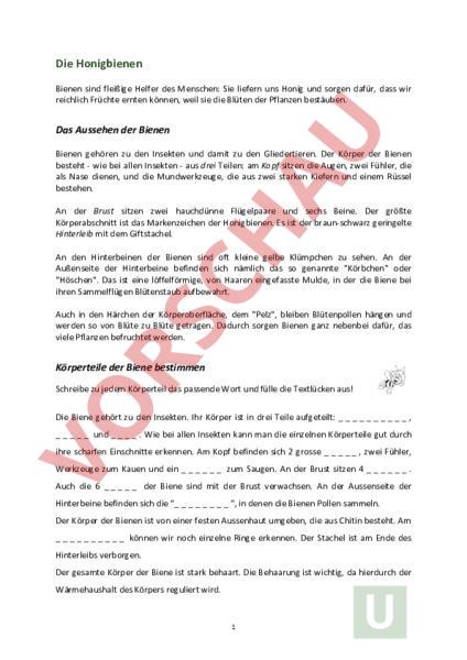 Arbeitsblatt: Die Biene NMG 4. Klasse