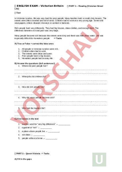 Arbeitsblatt: ENGLISH EXAM – Victorian Britain