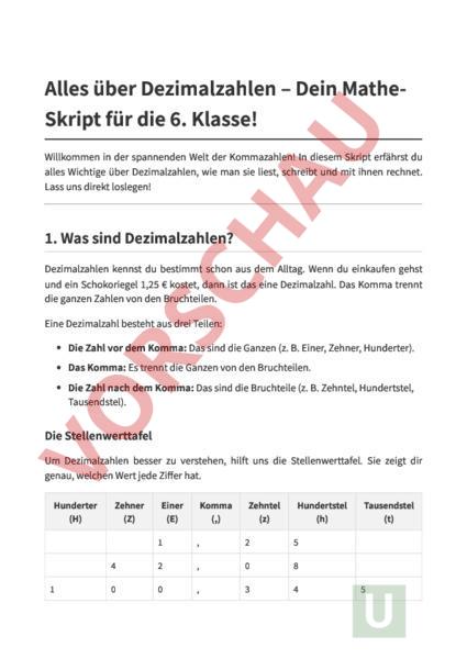 Dezimalzahlen - Mathematik 5/6 Klasse