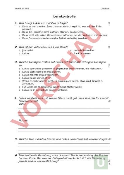 Prüfung zur Lektüre World on Fire
