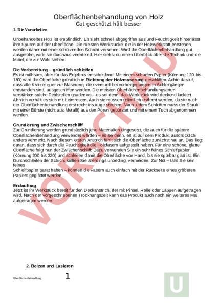 Arbeitsblatt: Oberflächenbehandlung von Holz