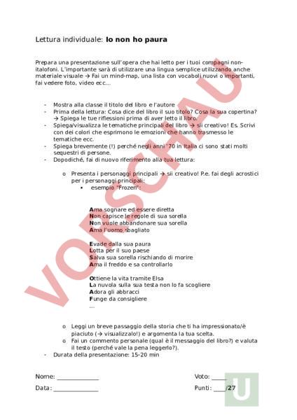 Arbeitsblatt: Lettura individuale_io non ho paura