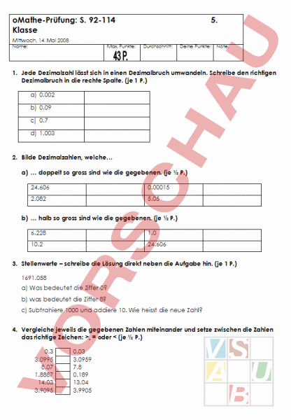 Prüfung zu den Seiten S.92-114 des 5. Klass-Mathebuch Kt. Zürich