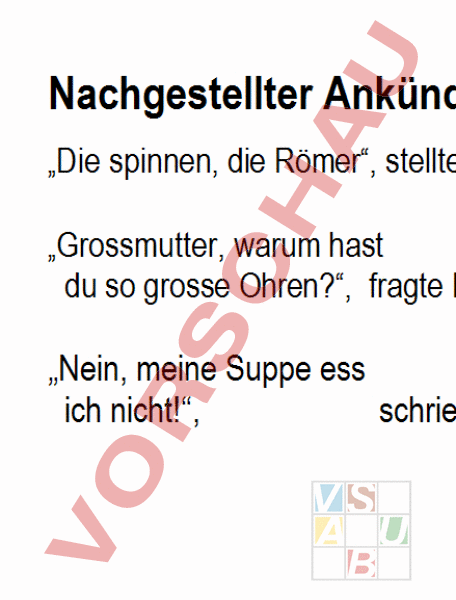 Übung zum nachgestellten Ankündigungssatz