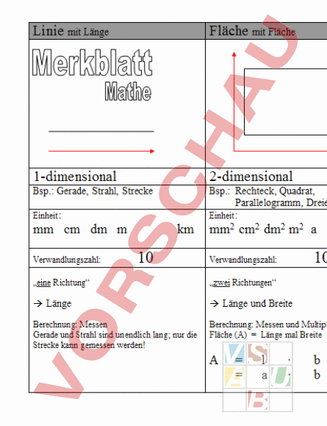 Merkblatt: Zusammenhang zwischen Linie, Fläche und Körper möglichst einfach dargestellt