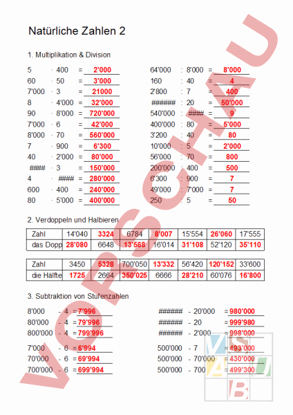 Ergänzung Zahlenbuch 5: Multiplikation & Division - Verdoppeln & Halbieren - Subtraktion von Stufenzahlen