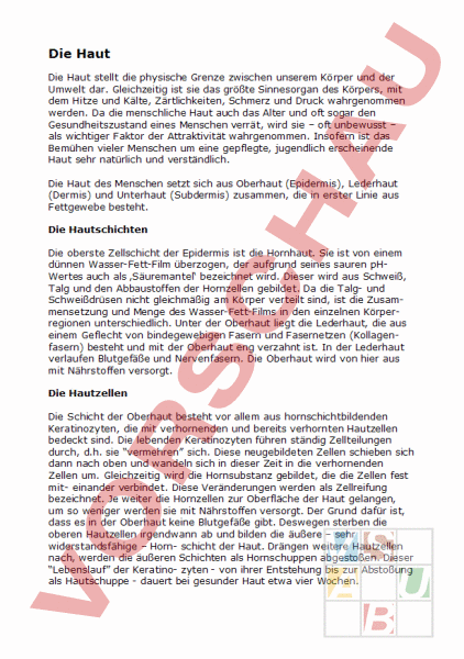 Arbeitsblatt: Die Haut
