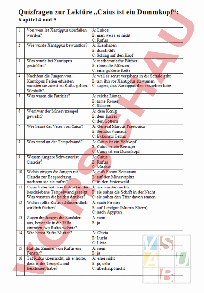 Arbeitsblatt: Quizfragen zu Kap.4/5 in Caius ist ein Dummkopf