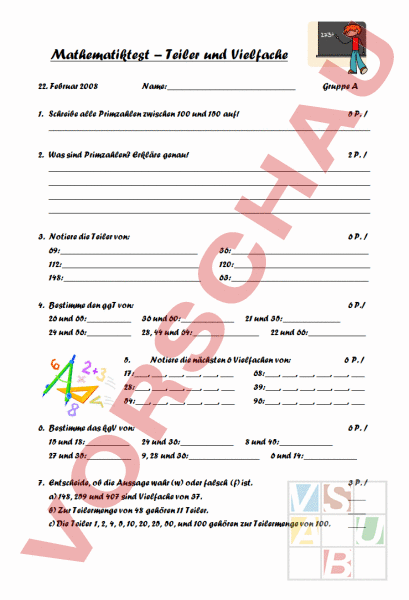Arbeitsblatt: Lernkontrolle Teiler und Vielfache