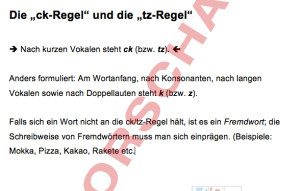 Kurzer Hefteintrag zur ck/tz-Regel.