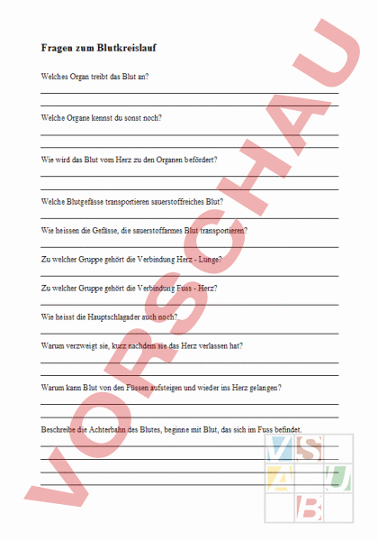 Arbeitsblatt: Fragen zum Blutkreislauf