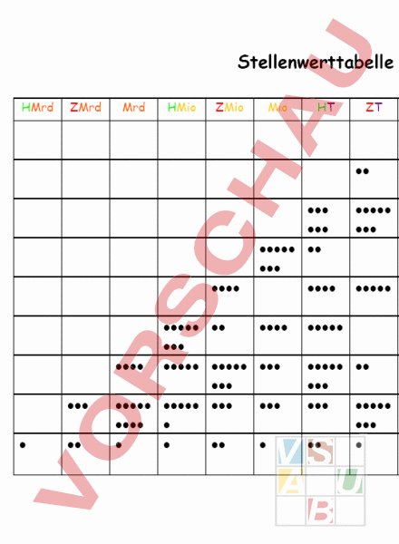 Arbeitsblatt: Stellenwerttabelle