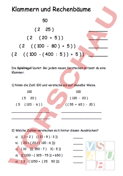 Arbeitsblatt: Klammern und Rechenbäume