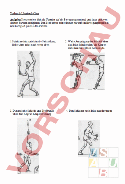 Arbeitsblatt: Vorhand- Überkopf- Clear