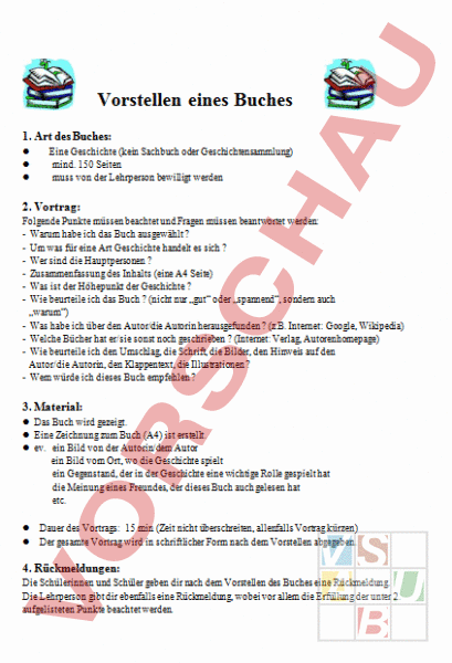 Arbeitsblatt: Anleitung für Buchpräsentation