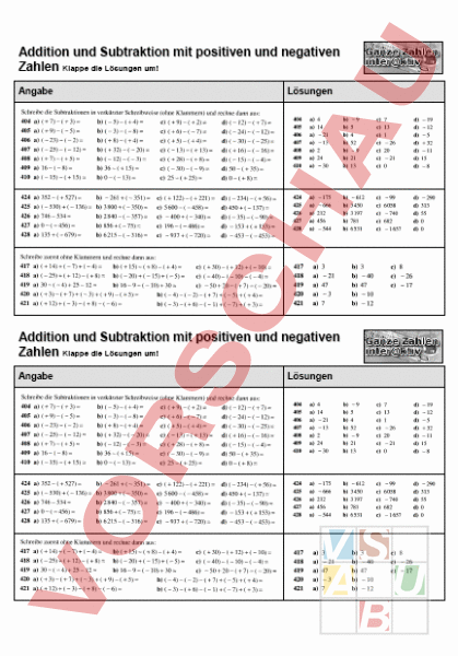 Addition und Subtraktion mit positiven und negativen Zahlen Klappe die Lösungen um! Angabe Lösungen Addition und Subtraktion mit positiven und negativen Zahlen Klappe die Lösungen um! Angabe Lösungen