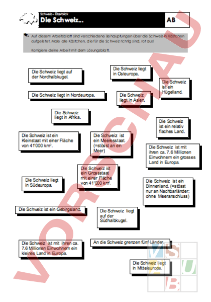 Behauptungen zur Schweiz: Die SuS sollen feststellen, welche davon wahr sind.