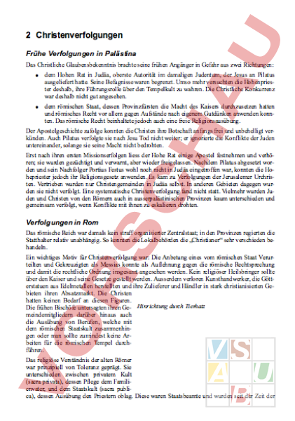 Das frühe Christentum 2/3: Christenverfolgung. Informationen zum Thema, Leseauftrag.