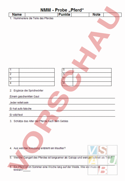 Arbeitsblatt: Pferde Probe