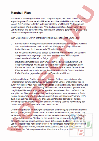 Arbeitsblatt: Marchall Plan Nachkriegszeit