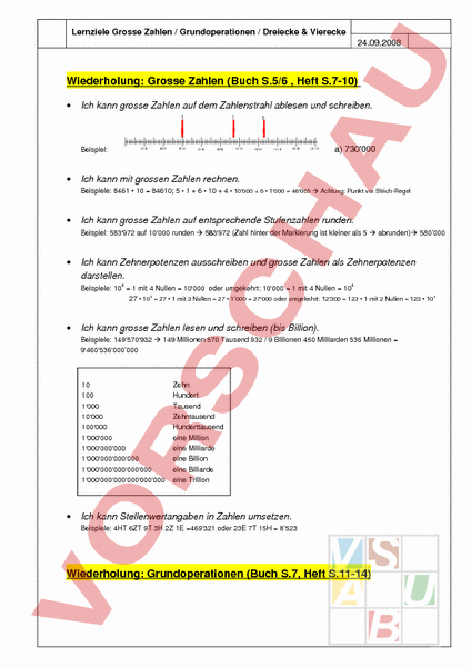 Themen: Grosse Zahlen, Grundoperationen, Dreiecke und Vierecke