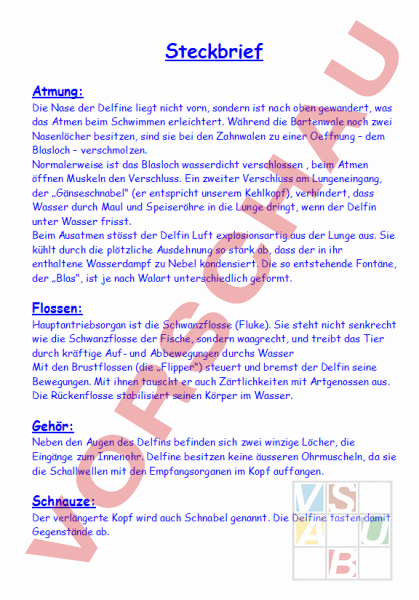 Arbeitsblatt: Delfin