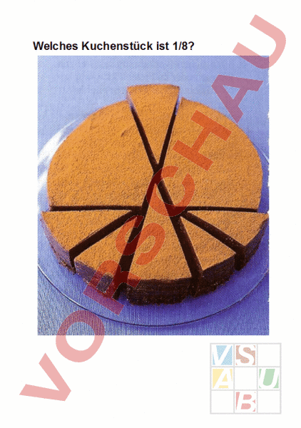 Ausgehend von einer Torte soll bestimmt werden, welcher Teil ein Achtel ist. Da aber nicht definiert wird, wovon ein Achtel, gibt es keine eindeutige Lösung.